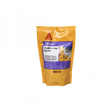 L'accélérateur de prise SIKA SikaCem Accélérateur Façade - 500ml, est conçu pour réduire le temps de prise des enduits, mortiers de montage et bétons, idéal pour les projections des enduits traditionnels ou décoratifs par temps froids.
