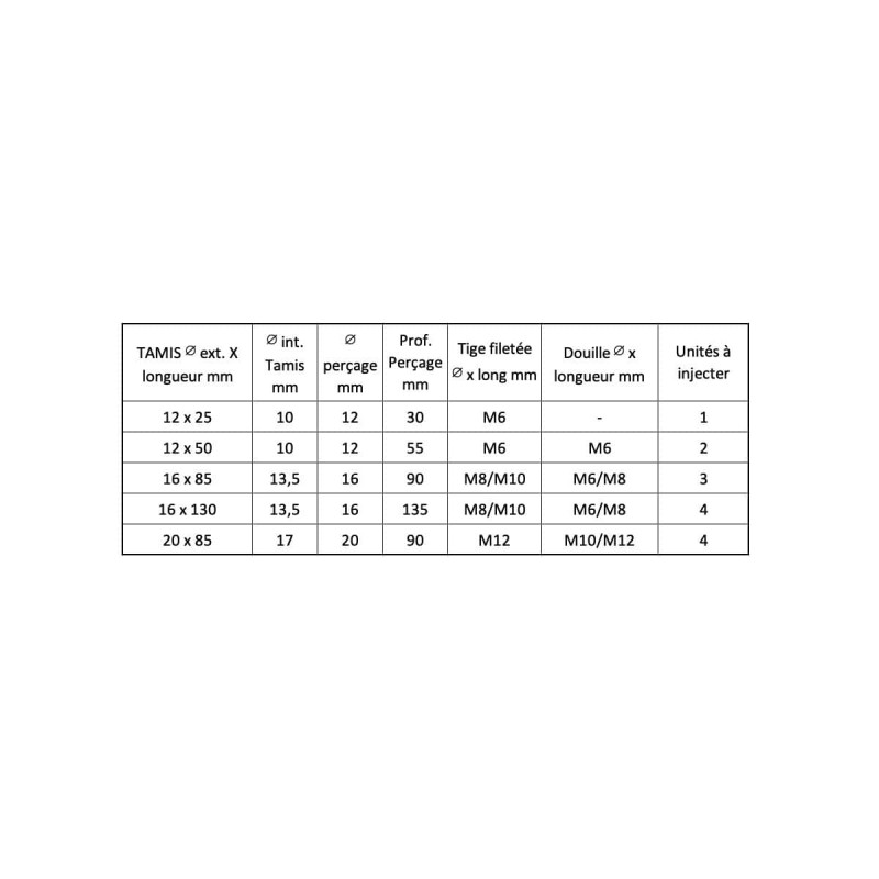 Tamis pour fixation chimique par injection de résine pour les matériaux creux