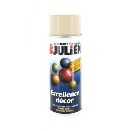 La peinture aérosol Julien ivoire "Excellence décor" est une peinture de très haute qualité, riche en résine et pigments. Sa formule gélifiée réduit les coulures. Elle est idéale pour obtenir un fini impeccable et un résultat rapide quand l'utilisation d'un pinceau est difficile ou impossible. Elle s'applique en intérieur comme en extérieur sur toutes surfaces : bois, osier, métal, verre, acier, aluminium, céramique, pierre, marbre, papier et tous les plastiques rigides (ABS, PVC).