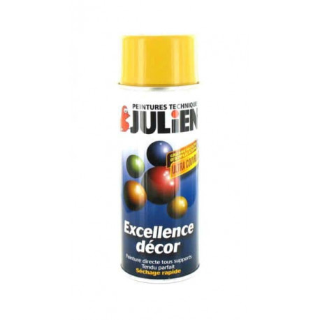 La peinture aérosol Julien jaune signal "Excellence décor" est une peinture de très haute qualité, riche en résine et pigments. Sa formule gélifiée réduit les coulures. Elle est idéale pour obtenir un fini impeccable et un résultat rapide quand l'utilisation d'un pinceau est difficile ou impossible. Elle s'applique en intérieur comme en extérieur sur toutes surfaces : bois, osier, métal, verre, acier, aluminium, céramique, pierre, marbre, papier et tous les plastiques rigides (ABS, PVC).