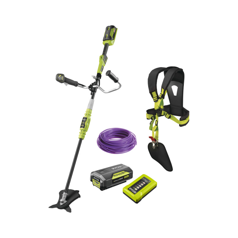 Pack RYOBI débroussailleuse 36V Lithium-ion RBC36X26B - bobine fil rond diamètre 1,6mm RAC101, alimentée par une batterie LithiumPlus 36V compatible avec tous les outils de jardinage de la gamme 36V, idéale travaux d'entretien et de débrousaillage.