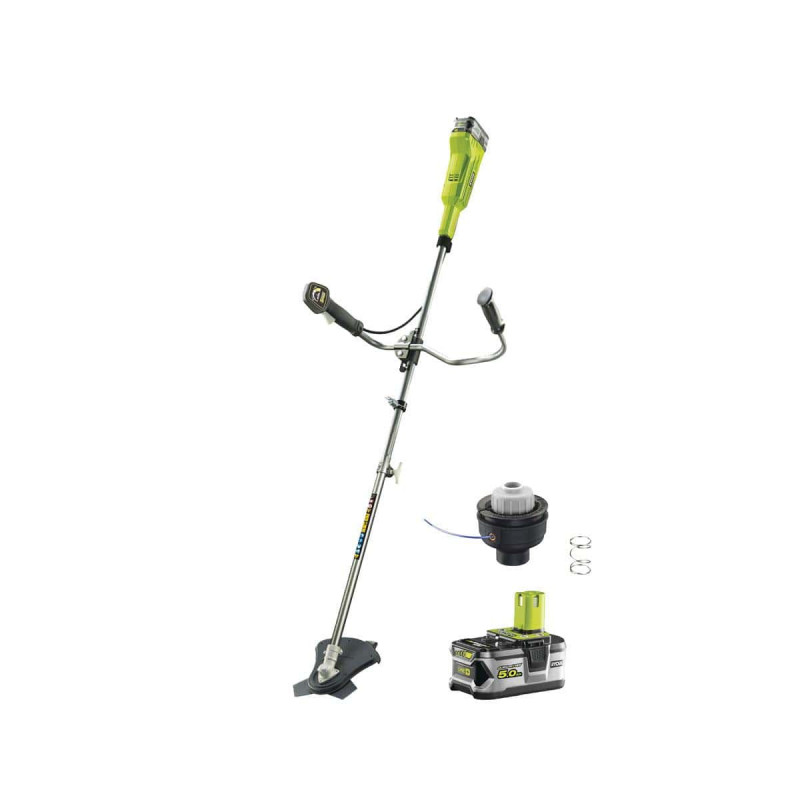 Pack RYOBI débroussailleuse 18V One+ LithiumPlus RBC18X20B4F - 1 batterie 5.0Ah RB18L50 - tête complète simple fil diamètre 1,6mm RAC114, idéale pour les travaux d'entretien et le petit débroussaillage sur des surfaces allant jusqu'à 600 m². Ce pack comprenant une débroussailleuse, une tête de rechange et une batterie 5.0 Ah, vous pourrez assurer vos travaux de jardinage avec autonomie et efficacité.