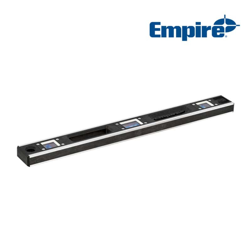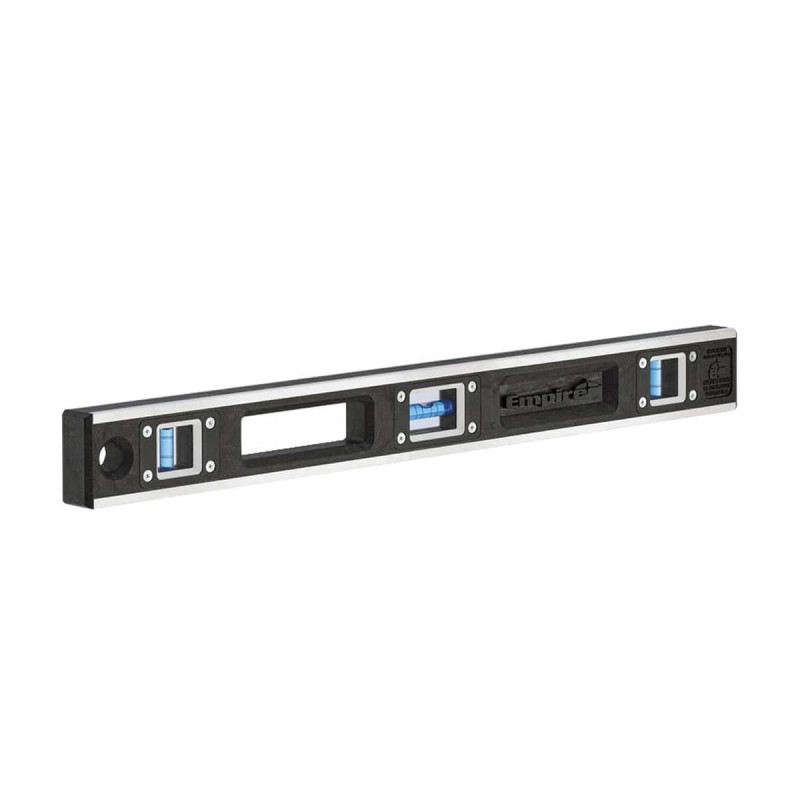 Niveau spécial béton EMPIRE - 600mm très résistant, ce niveau vous permettra d'effectuer des mesures d'une précision infaillible notamment grâce à ses bandes de contraste haute visibilité e-Band. Le cadre bi matière en métal et materiau composite spécial béton permet d'éviter des torsions.