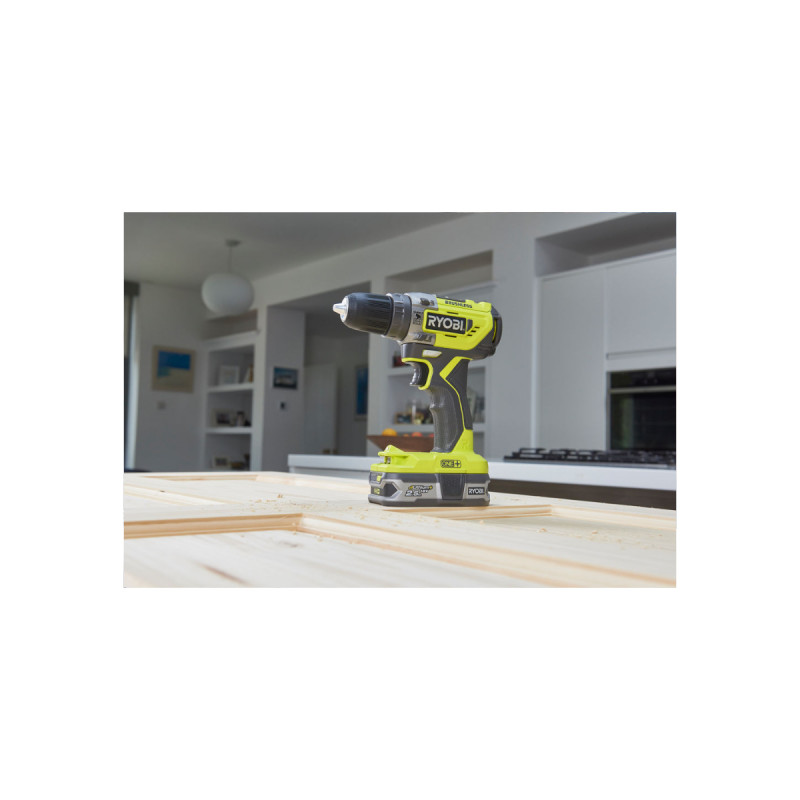 Perceuse-visseuse à percussion Brushless e-torque 18V ONE+ - Batteries Lithium+ 2x 2,0 Ah R18PD5-220S RYOBI, un outil polyvalent qui s'adapte à tous types de travaux. Des résultats parfaits grâce à la technologie E-torque Control ! En mode vissage la perceuse identifie le matériau et la taille de la vis pour s'arrêter automatiquement à fleur des matériaux afin de garantir une finition parfaite.