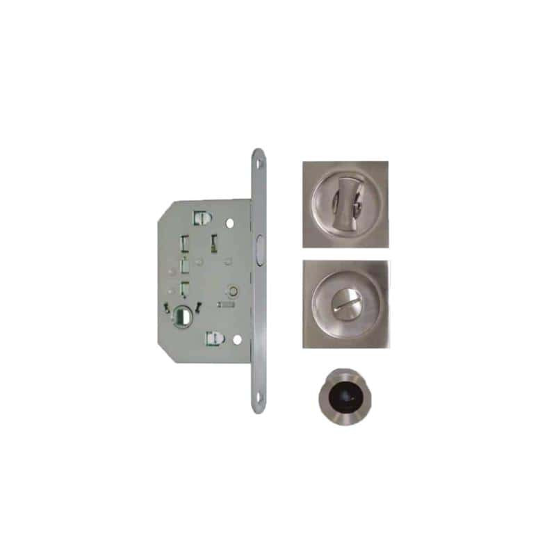 Un kit pour porte à galandage - poignées carrées - condamnation - inox