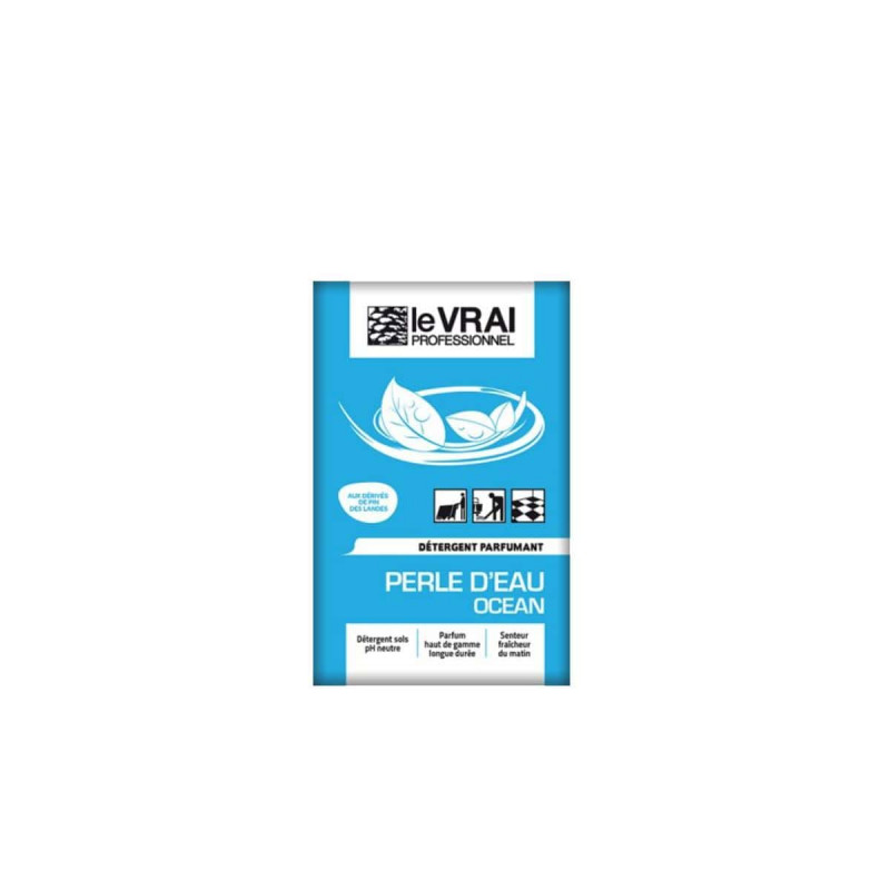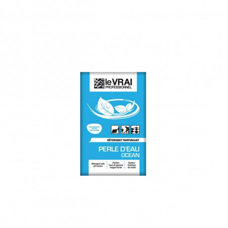 Détergent sols Le Vrai Professionnel Perle d'eau - 125 doses de 16 mL, détergent de longue durée pour tous les types de sols en milieux collectifs. Son parfum haut de gamme dure jusqu'a 8 heures.