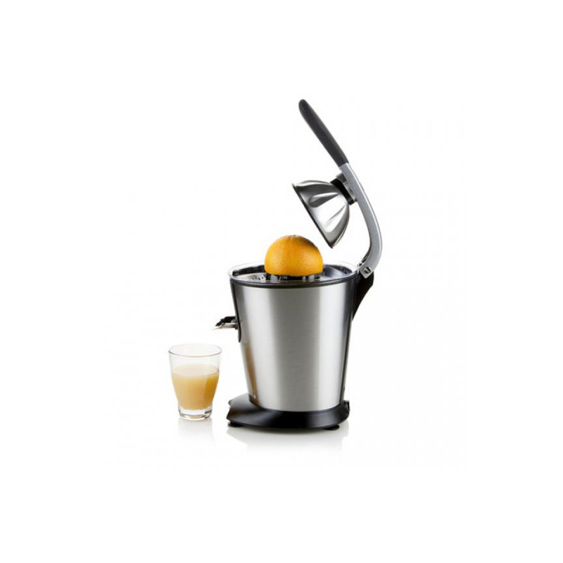 Presse-agrumes avec levier DOMO - DO9173J, appareil idéal pour vous préparer de délicieux jus d'orange et jus d'agrumes. L'appareil en acier inoxydable pressera parfaitement vos fruits grâce à son levier puissant. Il est entièrement démontable, pour un nettoyage facile.
