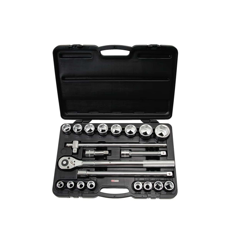 Coffret de douilles KS TOOLS - 21 pcs - 911.0721, coffret de douilles 3/4" comprenant 21 pièces. Embouts de vissage 6 pans pour une utilisation adaptée. Cliquet réversible 24 dents.