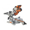 Poussez la goupille de verrouillage vers le haut pour modifier le réglage, puis actionnez la poignée de réglage pour obtenir l'angle souhaité. Vérifiez que les guides de protection soient bien réglés avant l'utilisation. Pressez la gâchette pour actionner la lame et ainsi libérer la descente. Il ne vous reste plus qu'à abaisser la tête de coupe. Maintenant, enfoncez la goupille de blocage et procédez à la découpe.