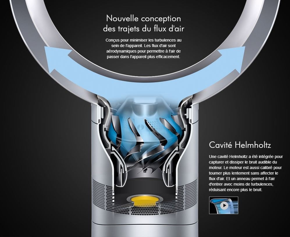 75% de bruit en moins, ils sont idéaux pour les chambres à coucher. Troué en son centre, le ventilateur Sool Dyson ressemble plus à une œuvre d’art moderne qu’à un équipement. Le moteur et son ronronnement ont été isolés, le flux d’air est mieux distribué, voilà comment Dyson a réussi à obtenir de véritables prouesses de son ventilateur Cool.