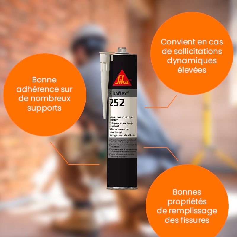 Le Sikaflex 252 est un mastic-adhésif polyuréthane monocomposant. Voici quelques-unes de ses propriétés remarquables :